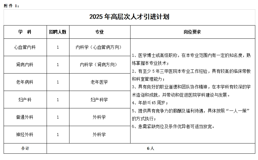附件1:2025年高层次人才引进计划