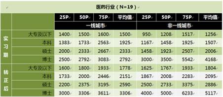 据调查,医学毕业生的工资分为两个阶段:实习期和转正期。通过试用期后,转正期薪酬会作出些许调整,约增加 12% 左右。2013 年应届毕业实习期与转正后薪酬情况见下表: